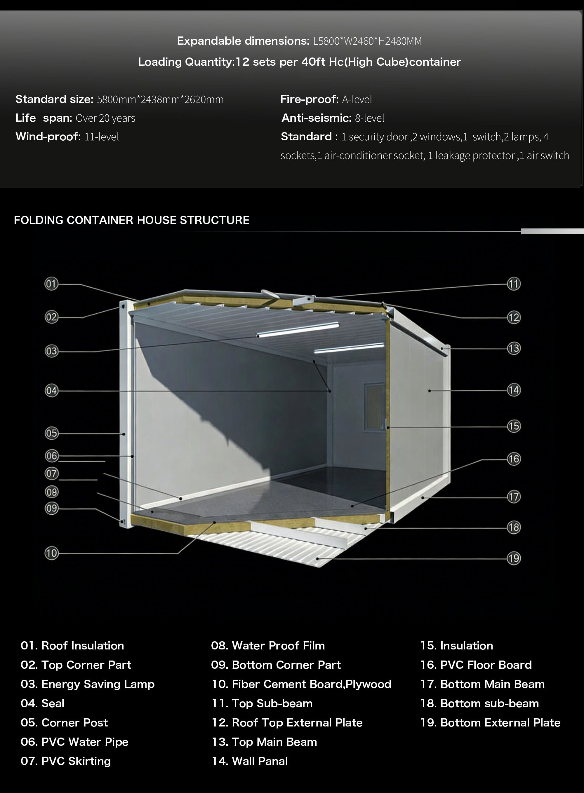 The "Z" type foldable container house is more suitable for emergency construction and worker dormitories. Emergency projects generally require a very short construction cycle, and the "Z" type foldable container house is installed very quickly on site. Three people can build a single box of finished products in just half an hour, and up to 14 sets of boxes can be transported by single vehicle, reducing transportation costs and saving time. And in terms of quality, appearance, and practicality, it can be comparable to packaging boxes.